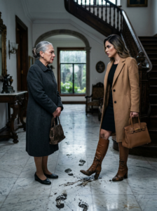 La Humilló Con Las Botas Llenas De Lodo, Le Ordenó Limpiar “Porque Vivía Gratis” Y La Trató Como Sirvienta Frente A Todos, Sin Imaginar Que La Anciana De Manos Agrietadas Era La Verdadera Dueña De La Mansión, Que Guardaba Las Escrituras En Una Caja De Seguridad Y Que, Mientras La Nuera Preparaba Té Para Sus Amigas De San Ángel, Ella Caminaba Bajo La Lluvia Hacia Una Inmobiliaria Para Poner En Venta La Casa, Destruir La Mentira De Su Hijo Y Recuperar De Un Solo Golpe Su Dinero, Su Nombre Y Su Dignidad…