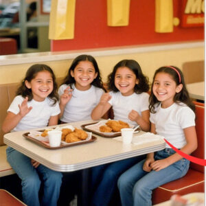 Dolores lo siguió y se sentó en el suelo. Sacó una foto vieja de las cuatro niñas, Mariela, Renata, Lucía y Cela, en su última salida a comer con su mamá. La foto fue tomada frente al restaurante de pollo frito, pollos dorados de tula. Las cuatro niñas estaban sentadas alrededor de la mesa sonriendo muy felices. Dolores acarició suavemente la foto.