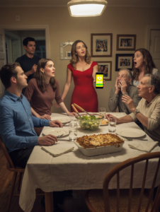 Belle walked into the living room in the red dress and, yeah, it was a statement. Elegant but dangerous. She hugged me a second too long and whispered, “Game on.”