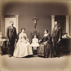 Su esposa, doña Carmen, dirigía con mano firme las actividades benéficas de la parroquia local. Tenían cuatro hijos. Emilio, de 25 años, quien ya manejaba gran parte del negocio familiar. Esperanza de 22, prometida con el hijo del alcalde, los gemelos Rafael y Ricardo de 19 años y la pequeña Soledad de apenas 12 años. La familia vivía en una imponente casona de estilo colonial en la calle principal, frente a la plaza central del pueblo.