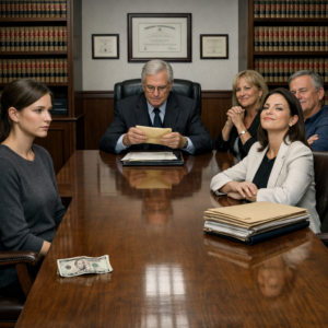 She paused, ensuring she had the full attention of the room. She opened her Chanel wallet, a flash of black quilted leather, and purposefully extracted a single crisp bill. She placed it on the mahogany desk and pushed it toward me. It slid across the polished wood and stopped just short of my clasped hands.