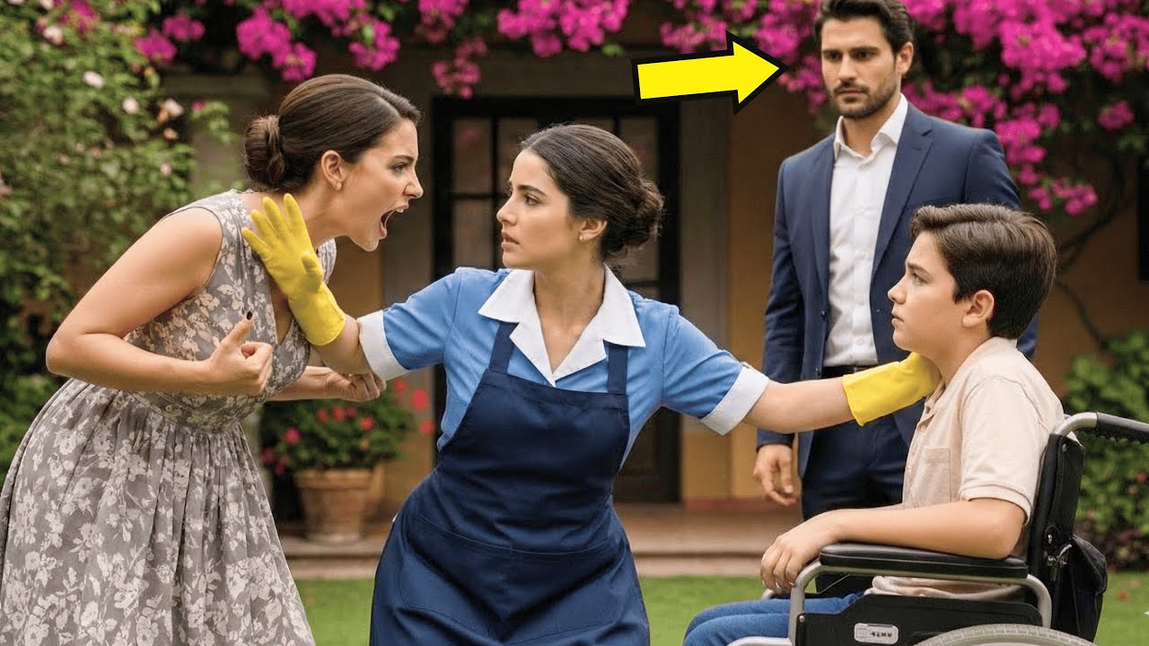 millonario descubre a la limpiadora protegiendo a su hijo liciado y queda espantado al ver la verdad. El grito en el jardín. El chillido desgarró la paz de la tarde, un sonido agudo, histérico y cargado de veneno que hizo que el aire caliente se sintiera repentinamente helado.