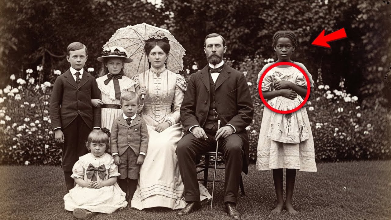 Detrás de ellos el jardín estaba en plena floración. Rosas blancas cubrían los arbustos del fondo. El césped se veía impecable. Pero Ricardo se detuvo en la figura del extremo derecho. Una joven de aproximadamente 8 o 9 años de piel oscura, vestida con un uniforme de trabajo de tela burda. Estaba de pie, separada del grupo familiar, casi fuera del encuadre.