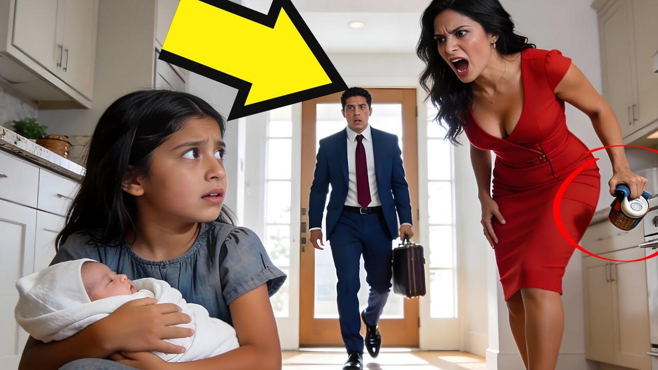 Madre, por favor, no lo hagas. La súplica escapó de los labios de la niña como un susurro hecho pedazos, empapado de miedo, justo en el momento en que la puerta de la casa se abrió de golpe. El padre, un hombre rico y respetado, regresó antes de lo previsto y se quedó helado al ver a su hija abrazando con desesperación al bebé, temblando frente a la mujer que se suponía debía cuidarlos.