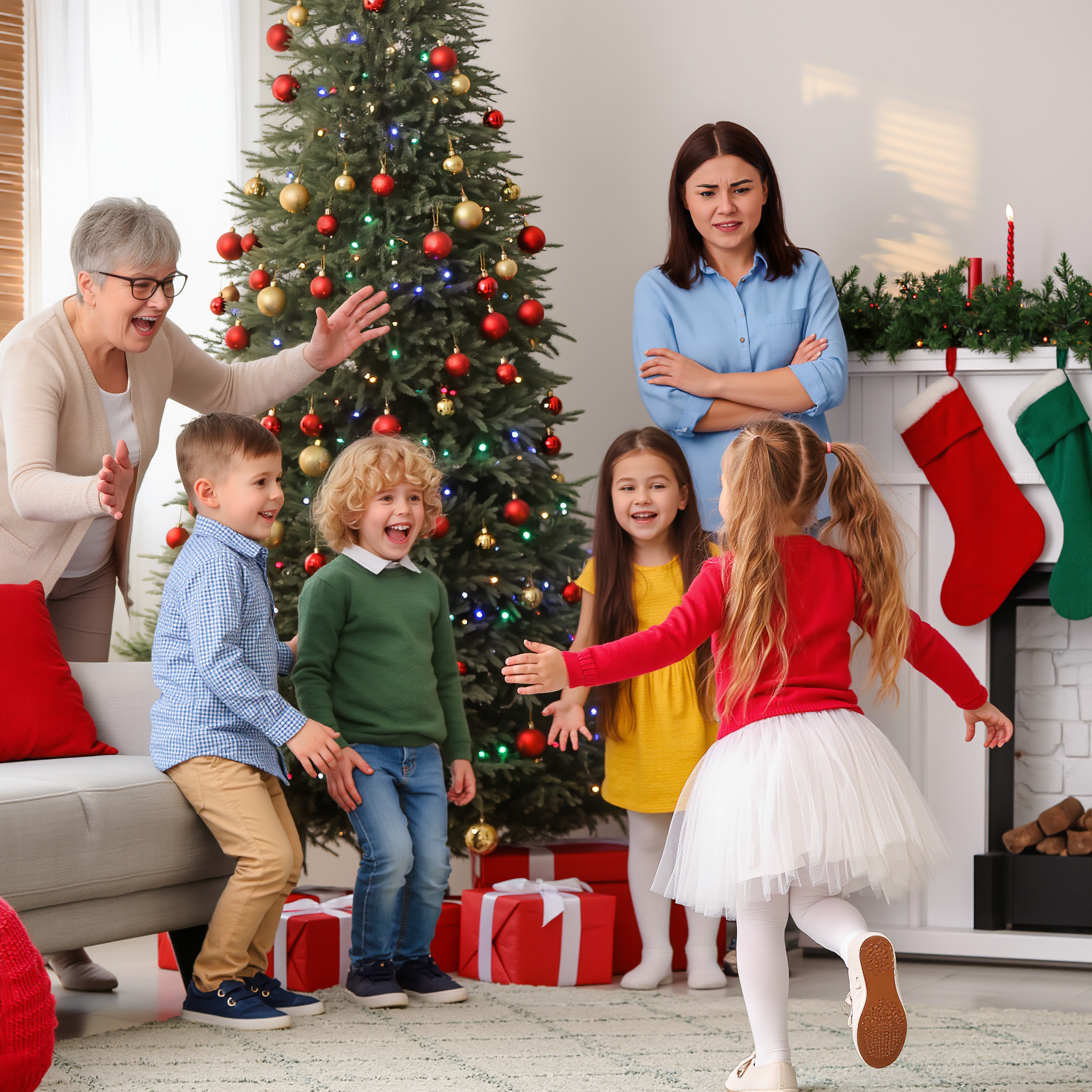 At first, Lily stayed close to me, holding my hand as she watched her cousins—my sister-in-law Megan’s two kids—running around the couch, shrieking with laughter and tossing a stuffed reindeer at each other.