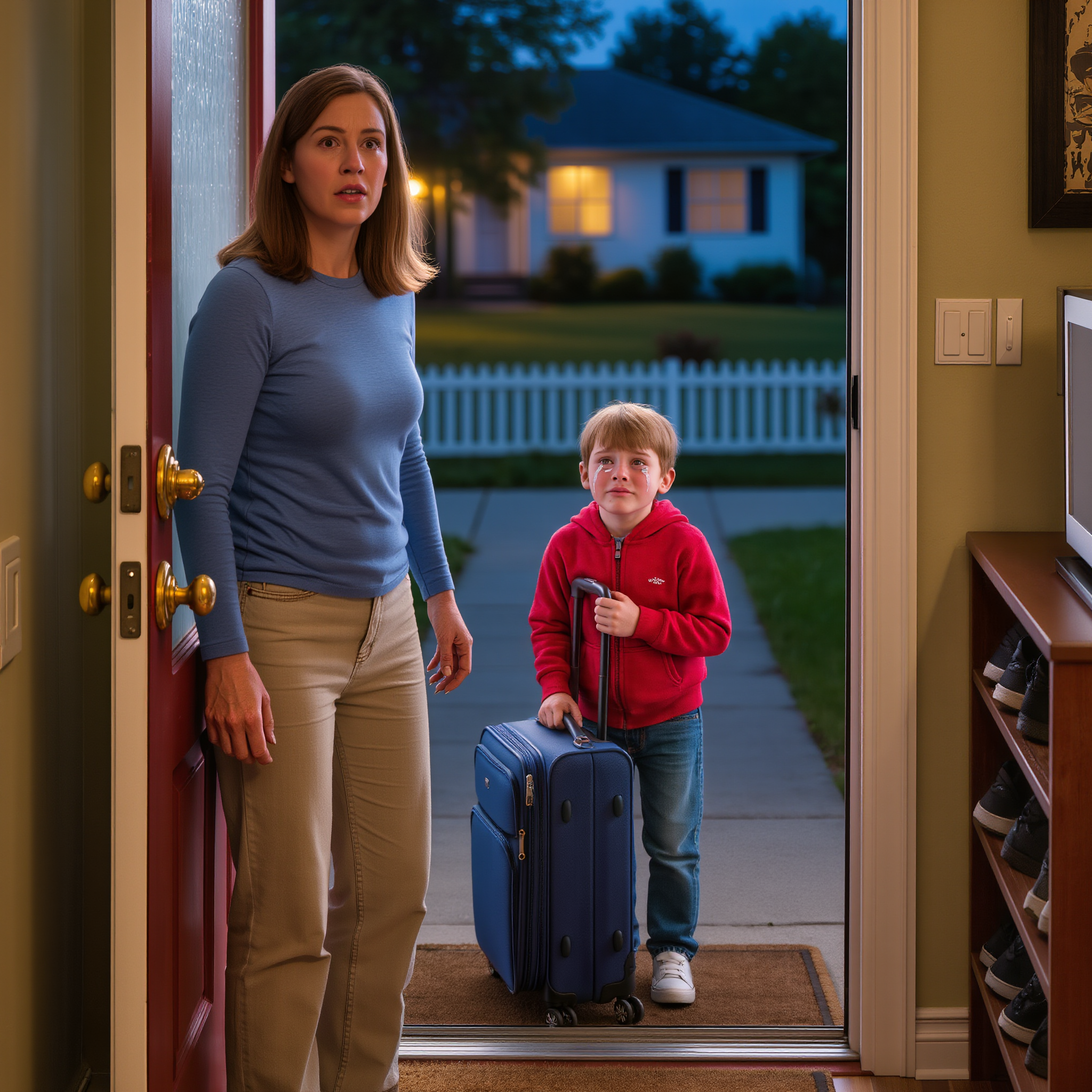I opened it to find my mother standing there, red-faced and furious, dragging Ethan’s small blue suitcase behind her. Her hair was disheveled, her voice sharp and shaking.